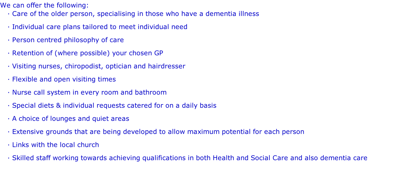 “To provide quality accommodation in a home type environment giving the people who live here the best that they can have”